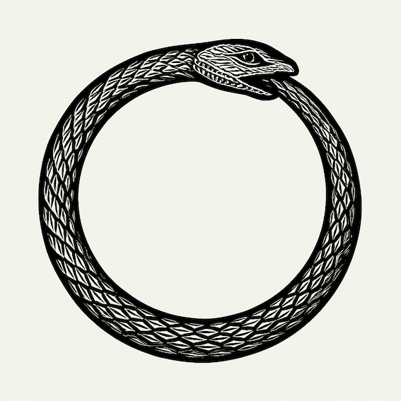 Ouroborism may not yet appear in the dictionary. But then again, nor did doomscrolling, edgelord, or hangry until recently. Language, like everything else, moves in spirals; some words are voted in by a committee, while others arrive already unrolled from their coil, as if they have always been here.
