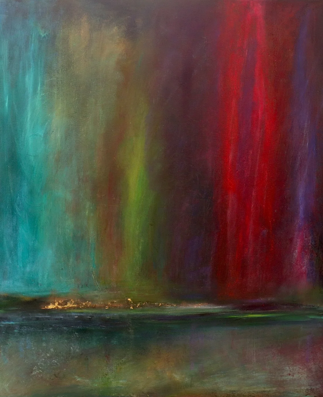 Detail from Aurora Over Lerwick, acrylic, oil and 24 ct gold on canvas